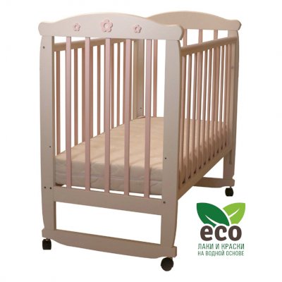 Кроватка "Соня 02" имеет механизм качания колесо-качалка. Колеса оснащены стопорами.