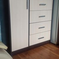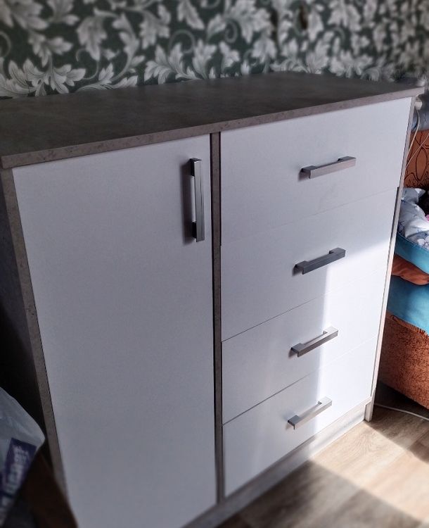 Выбирали комод по фото. Даже не ожидали, что комод окажется настолько качественным и красивым! Все детали без дефектов и сколов, что очень порадовало! Достаточно крепкая фурнитура, крепкие салазки. Приятно, что продавец очень внимательный и положил даже наклейки для того, чтобы закрыть место крепления! Однозначно рекомендую к покупке! Теперь хотим угловой шкаф и тумбу из этой же серии мебели, чтобы собрать комплект.
