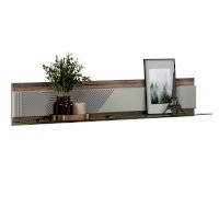 • На вертикальной панели, которая крепится к стене с помощью специальных навесов, закреплена стеклянная полка при помощи туканов