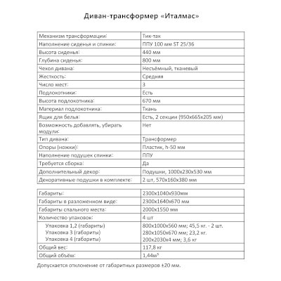 Диван-трансформер Италмас (Аквилон) - за 73 382 руб. в Мариуполе. Купите на сайте mariupol.onlinemarketmebeli.ru или по телефону 8(800)505-30-63 уже сегодня! Уточнить наличие, комплектацию, актуальную цену можно бесплатно у менеджера ежедневно. Закажите Диван-трансформер Италмас (Аквилон) до конца акции! Доступна покупка в кредит, рассрочку. Доставим со склада или на заказ.