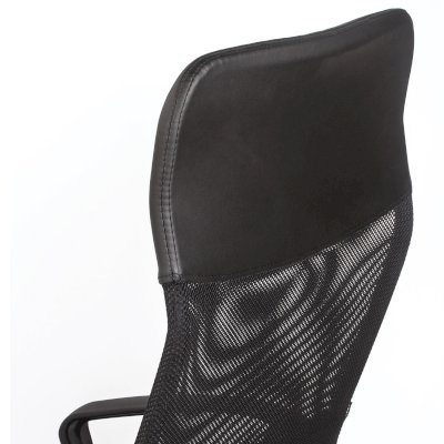 Спинка кресла выполнена из прочного сетчатого акрила. Материал обладает высокой воздухопроницаемостью, легко чистится, способен подстраиваться под физиологические изгибы спины, при этом сохраняет форму и не растягивается. Верхняя, наиболее подверженная износу, часть спинки изготовлена из экокожи. Помимо этого в области поясницы предусмотрена специальная вставка из эластичной ленты для дополнительной поддержки спины.