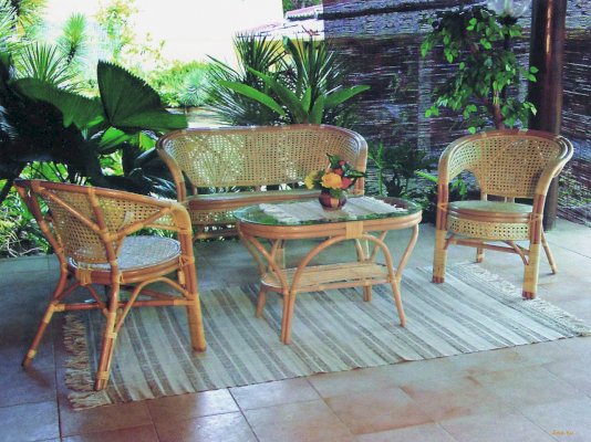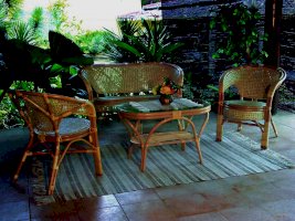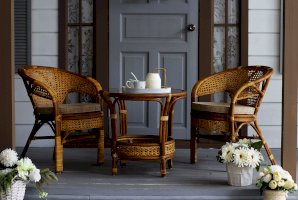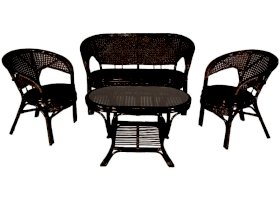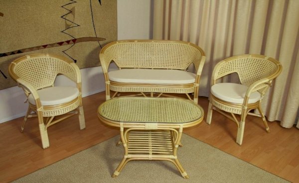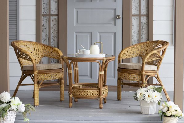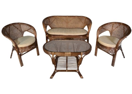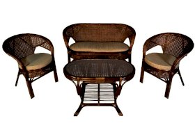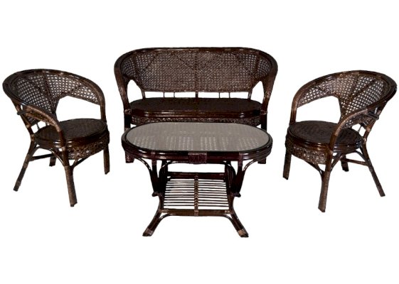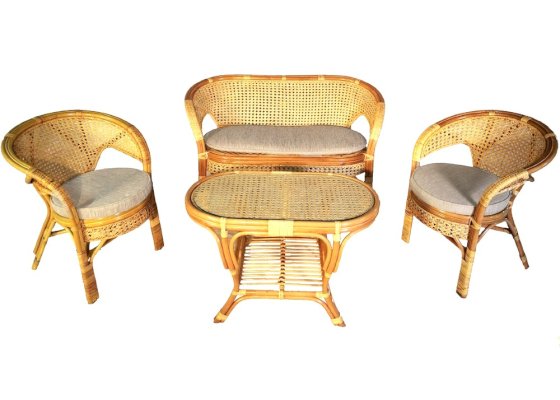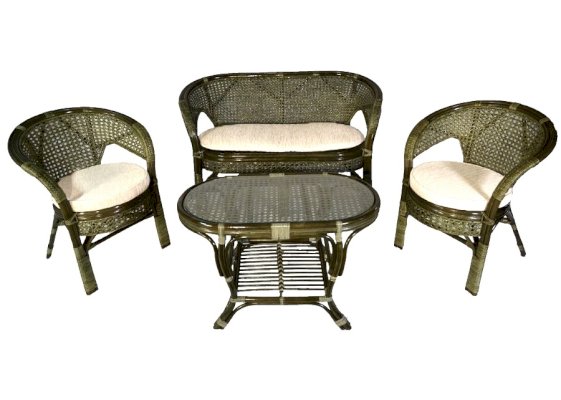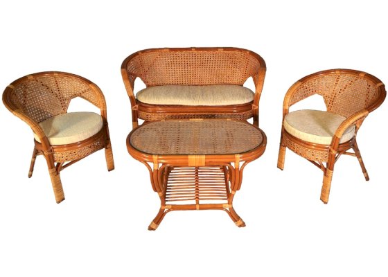 Кресло из натурального ротанга с подушкой и плетеной спинкой Пеланги.