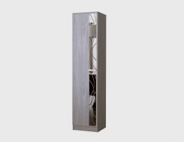 Декоры отличаются выраженной древесной текстурой, а фасадная часть украшена тонированным стеклом и зеркалами с пескоструйным рисунком.