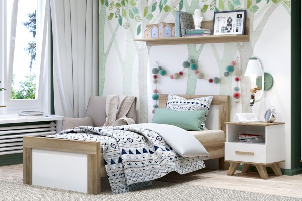 Односпальная кровать «Вега Скандинавия» поможет вам создать интерьер спальни или молодежной комнаты и обеспечит комфортный отдых и сон. Кровать имеет удобные габариты спального места 90×200 см. Материал изготовления — высококачественная ЛДСП цвета «Дуб каньон» - натуральный оттенок древесины в сочетании с белым или серым цветом "Силк флай" подарит уют вашей спальне.