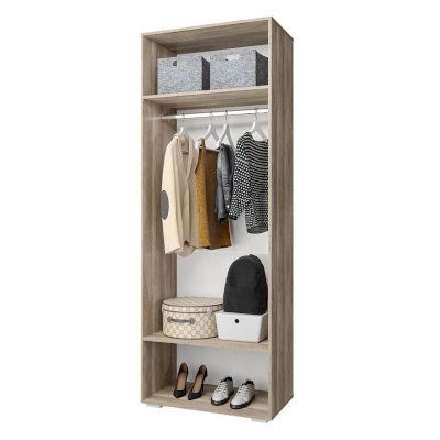 Шкаф распашной из серии Наоми – красивое и стильное решение для современного интерьера. Модель имеет две распашные створки, одна из них полностью зеркальная, а вторая – с интегрированной ручкой. Внутренняя комплектация состоит из вместительного отделения со штангой для одежды на вешалках и двух ниш для хранения трикотажа или обуви.