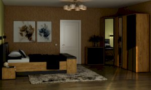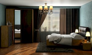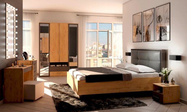 В этой коллекции мы используем два вида материала для основных элементов ЛДСП и для мягкой отделки декора кровати у изголовья.