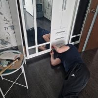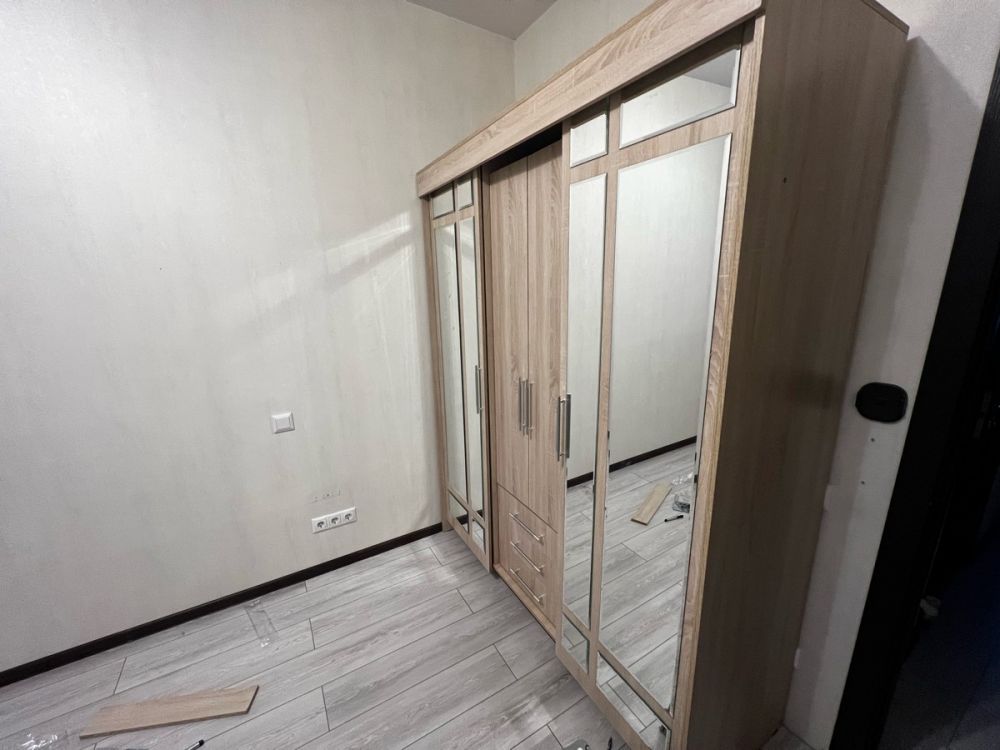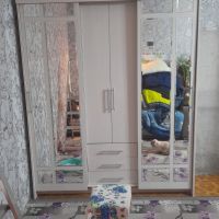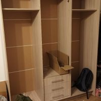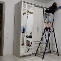 Привезли быстро, подняли на этаж, занесли в квартиру. В комплекте нет инструкции по сборке, пришлось искать в интернете, так себе удовольствие. Отверстия под петли на одной стороне сделаны не правильно, пришлось пересверливать, чтобы дверца встала на своё место. Верхняя планка слишком широкая, центральные дверцы не открываются, нет отверстий для штангодержателя.