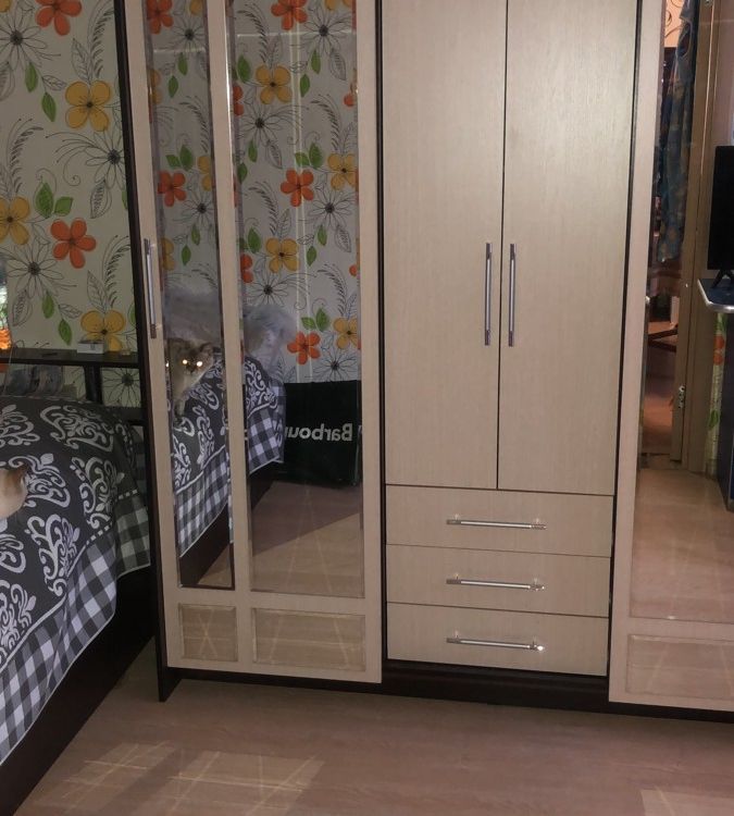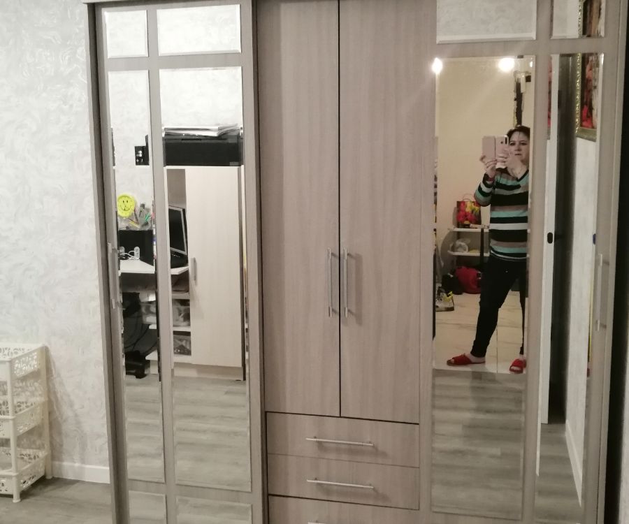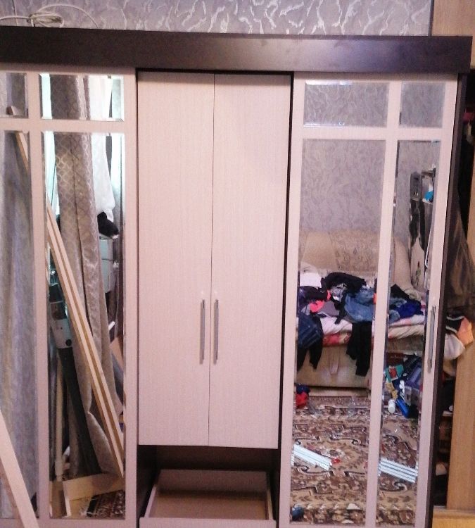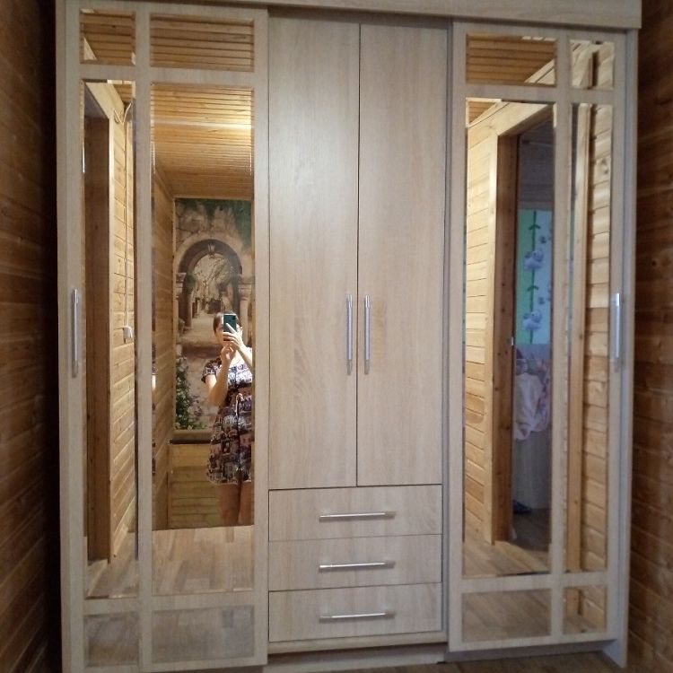 Цвет дуб сономна нам очень подошел. Шкаф вместительный, хотя можно было бы по высоте взять 2,40 или даже 2,50. Собирали сами с мужем. Отлично смотрится. Зеркала придают обьем в комнате. Полки вместительные, два отделения для верхней одежды. Но вот у дверей( зеркальных), что раздвижные, если смотреть чуть сбоку, видна щель. Будто дверь не плотно прилегает. Значит туда будет попадать пыль! По другому эти двери ни как не повесить! Ну, а в обшем не плохой шкаф!