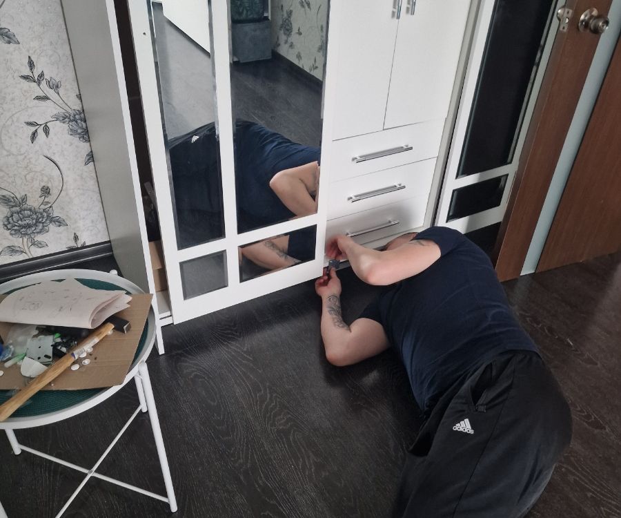 Шкаф был доставлен вовремя! Ребята сами занесли. Сборку делали сами