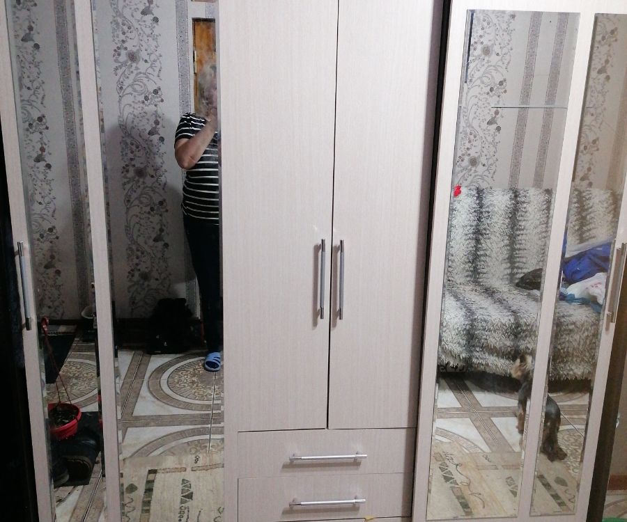 Инструкция подробная, собирать по ней легко. Сам шкаф тяжело самостоятельно поднять, вдвоем нормально. В комплекте фурнитуры есть всё необходимое, даже лишнее что-то осталось, про запас. Шкаф вместительный. Зеркала пришли хорошо упакованные, при доставке мы их проверили вместе с доставщиком! Обязательно проверяйте. По габаритам, цвету всё соответствует. Единственное, после сборки у меня возникла сложность с зеркалами, обычное средство для окон и зеркал их не брало, но с усилием оттереть можно.