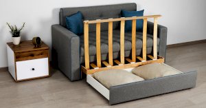 Диван-кровать Найс - компактное современное решение для гостиных, квартир-студий, детских и подростковых комнат. Может использоваться в качестве постоянного спального места для детей и подростков или гостевого спального места взрослого.