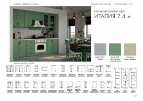 Кухонный гарнитур «Италия» воплотил в себе роскошь и эстетизм этой прекрасной средиземноморской страны. На суд покупателей представлены комплекты с отделкой под графит, платину, беленый дуб, а также великолепные модели фисташкового цвета. Шикарный вид придают дизайнерская фурнитура, дверцы шкафчиков из рифленого стекла, золоченные прямоугольники на фасадах.