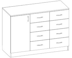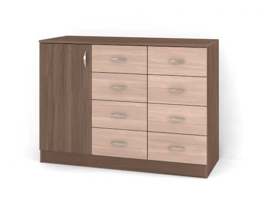 Данное изображение представлено в следующих цветах ЛДСП: корпус - Ясень Шимо тёмный, фасады - Ясень Шимо светлый.