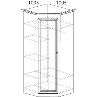 • Размер:(ШхВхГ, мм): 625х2316х595 (угол 1005х1005) (размер указан с учетом карнизов)