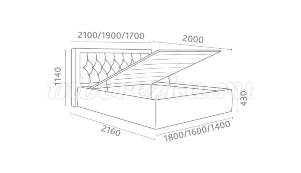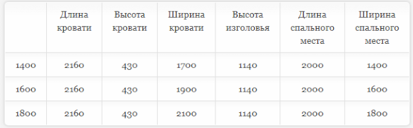 Кровать доступна в трех размерах: 1400, 1600 и 1800 мм.