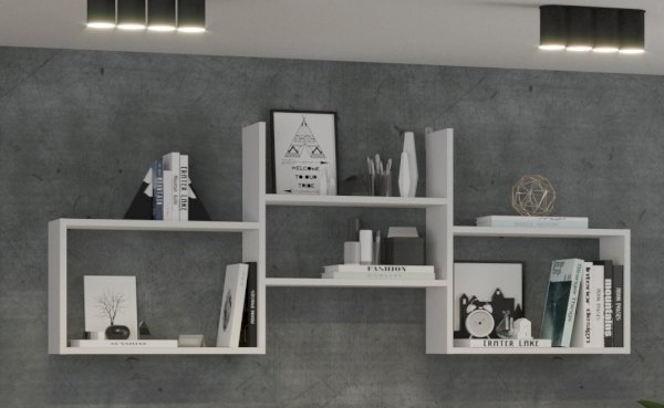 Полка прекрасно подходит для полноценной обстановки рабочего места, гостиной, детской. Конструкция выполнена в виде трех вместительных полок, которые находятся на различной высоте. Такую модель можно использовать для рабочих материалов и предметов декора, расширяя полезное пространство.
