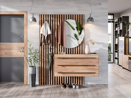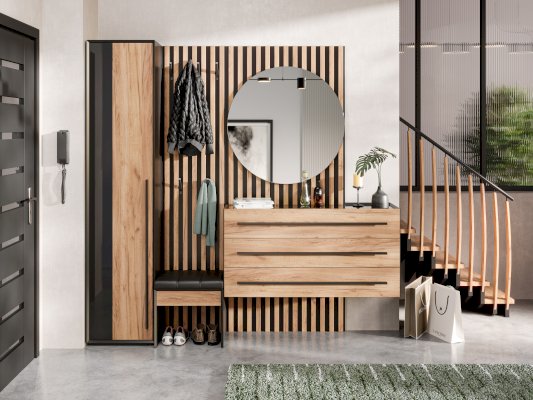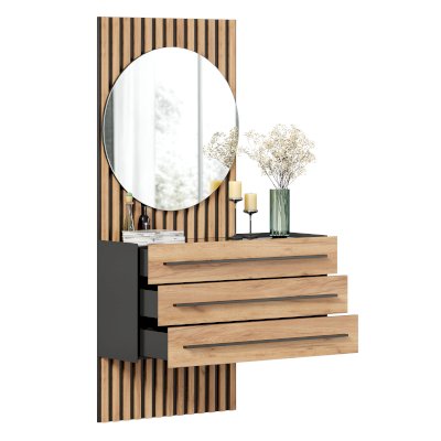 • Внизу тумба с 3-мя выдвижными ящиками на направляющих нижнего крепления полного выдвижения