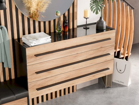 • Размер фасада ящика 1150х190 мм, глубина ящика 300 мм. На верхнем горизонте тумбы закреплено стекло черное 4 мм