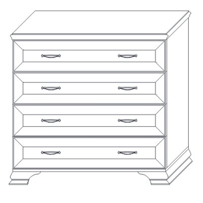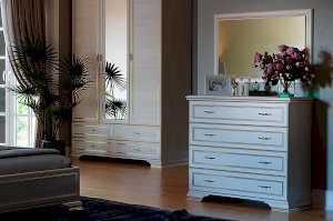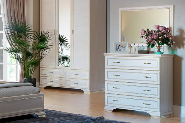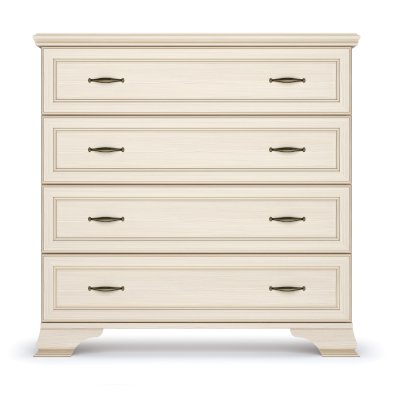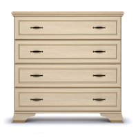 Классический комод в спальню оснащен 4-мя выдвижными ящиками. Конструкция модуля очень удобна для хранения белья или постельных принадлежностей, а ширина ящиков 817 мм делает их довольно вместительными. Высота изделия 926 мм позволяет украсить пространство вазами, сувенирами или другими красивыми предметами, разместив их на комоде.