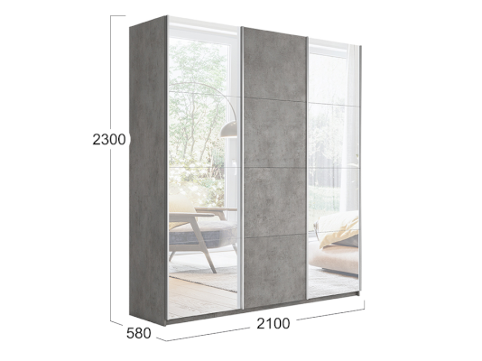 Трехдверный шкаф-купе с 2 зеркалами Траст 2100 (Трия)