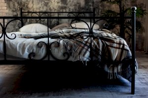 Кованая кровать Симона - это невероятное сочетание эффектного внешнего вида, потрясающих воображение результатов ручной ковки, стильного оформления в темных и светлых цветах и качественных, долговечных материалов исполнения.