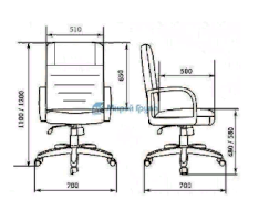 Кресло с высокой спинкой, с подлокотниками прямоугольной замкнутой формы с мягкими накладками обитыми в цвет кресла.