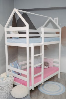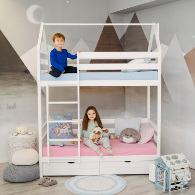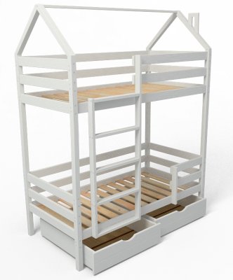 Детская двухъярусная кроватка-домик Classic из сосны – это аконичный дизайн, безопасные материалы и краски, качественное исполнение, простота в сборке!