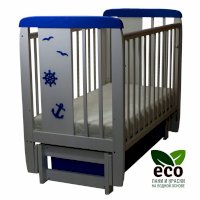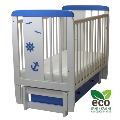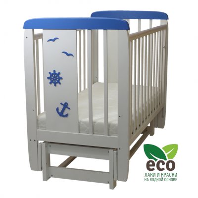 Кроватка "Соня 05" имеет механизм качания продольный маятник. Механизм качания фиксируется. Возможен вариант кровати с ящиком.