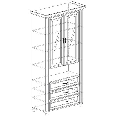 • Фурнитура: ручки металлические под бронзу, ножки пластмассовые на металлической опоре, направляющие шариковые.