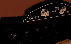 • Рисунки ретро-автомобилей на фасадах и столешницах в технике «шелкография» стилизованы под ретро-печать.