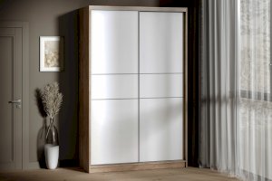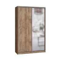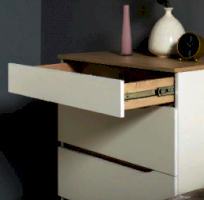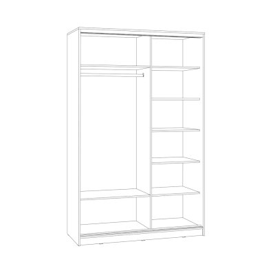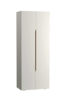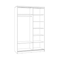 Это современное, практичное и уютное решение для спальни. Мягкое изголовье кровати установлено с небольшим наклоном, что даёт возможность не только лежать, но и комфортно сидеть, как на диване. Подъёмный механизм обеспечивает удобный доступ к вместительной системе хранения. Все изделия установлены на регулируемые опоры, что значительно упрощает установку и позволяет компенсировать неровности пола. Лицевую фурнитуру заменяет стильный вырез, за которым видно древесный декор корпуса. Вырезы делают внешний вид изделий асимметричным, что делает композицию современной и динамичной. Стеллаж и шкафы могут быть собраны в единую компоновку, давая возможность собрать в интерьере стильную шкафную группу. Наполнение шкафа может собрано на любую сторону, два выдвижных ящика скрыты за распашными фасадами, на обратной стороне которых размещается зеркало.
