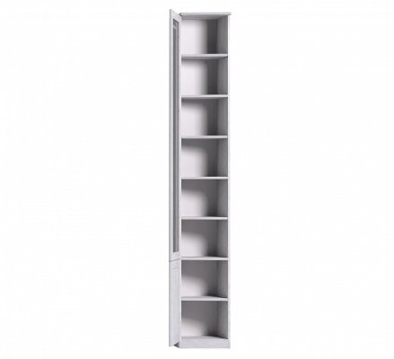 Высокий библиотечный шкаф со скосом влево гармонично завершает компоновку из шкафов библиотеки Sherlock, глубина зауженной части составляет 170 мм. Библиотечный шкаф можно установить в комнату с высотой потолка не менее 240 см. Высота полок во всех шкафах для книг регулируется, для этого необходимо только установить полкодержатели на нужной высоте в подготовленные отверстия. Это позволит поставить на полки книги и альбомы разного формата. Нагрузка на одну полку не должна превышать 13 кг.