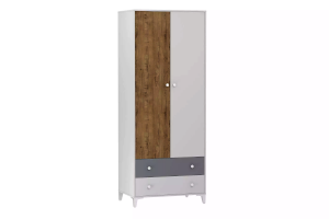 Шкаф «Морти» на высоких изящных ножках предназначен для тех, кто любит простоту и минимализм. Шкаф обладает модным сочетанием материалов и, благодаря характерным декоративным особенностям, понравится всем поклонникам скандинавского стиля. Отделение с полкой и штангой предназначено для хранения одежды на вешалках, головных уборов, коробок с аксессуарами. Два выдвижных ящика предназначены для сложенной одежды, аксессуаров, личных вещей.