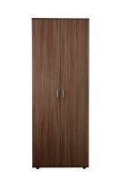 Шкаф двухдверный отличается простотой и лаконичностью оформления, внутри вместительные полки.