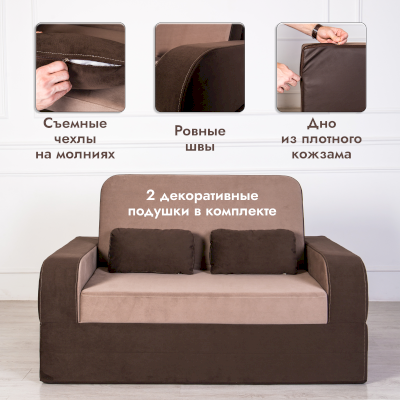Вес дивана всего 30 кг. Дно дивана изготовлено из плотного кожзама. В процессе уборки его легко передвинет самая хрупкая девушка. Наружный чехол легко снимается благодаря застежкам-молниям для передачи его в химчистку.