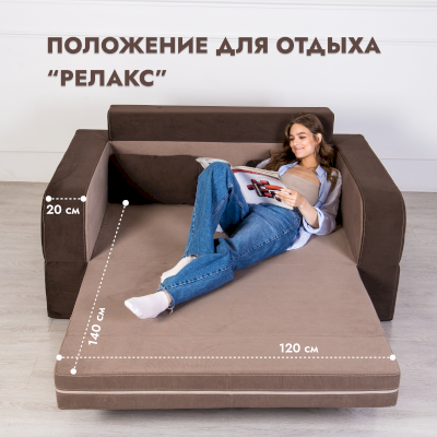 «Мико» - бескаркасный диван-трансформер. Раскладывается в положение для отдыха «релакс» и в полноценную кровать.