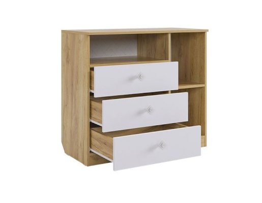 3 выкатных ящика, ниша и закрытые полки, все что нужно что бы разместить вещи вашего ребенка.Открытая ниша для гаджетов, столешница толщиной 16 мм, на которой с легкостью поместиться большой телевизор.