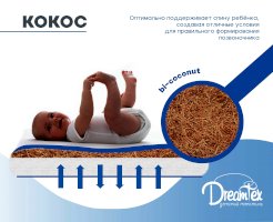 • Кокосовая койра – идеальный, по мнению педиатров и ортопедов, наполнитель для детских матрасов и рекомендован для детей от 0 до 12 месяцев. Данный наполнитель не вызывает аллергии, а его жесткость оптимальна для формирования позвоночника. Высокая пористость кокосовой койры гарантирует отличную вентиляцию вне зависимости от количества слоев. Кокос не впитывает запахи и влагу, что немаловажно в детском изделии.