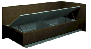 Сделана в виде дивана с подъемным основанием, внутри ящик.