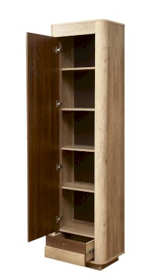 Шкаф для белья – абсолютный брат-близнец шкафа-витрины 34.06. За небольшим отличием – вместо стеклянной двери у модуля сплошной глухой фасад. Конечно, ведь белье не должно выставляться напоказ! Внутри – пять одинаковых по высоте полок из ЛДСП, каждая из которых выдерживает вес до 5 кг. Здесь можно расположить постельное белье, полотенца, трикотаж – все, что угодно! Если поставить такой шкаф в кабинет или детскую комнату, в него поместится небольшая библиотека.