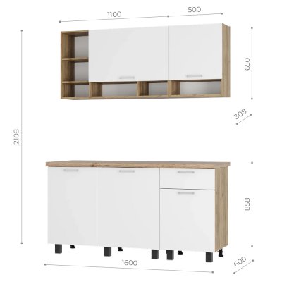 Кухня «Вика» - это не просто кухонный гарнитур, а единая концепция, объединяющая в себе стиль, компактность и вместительность. Белые фасады визуально увеличивают пространство и наполняют его светом. Верхняя часть кухни «Вика» представляет собой сочетание открытых и закрытых полок разного размера, которые подойдут для хранения кухонных девайсов и небольших предметов для готовки.
