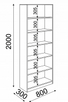 • Стеллаж с пятью открытыми полками, из которых: три - съемные, две - жесткого крепления (через одну).