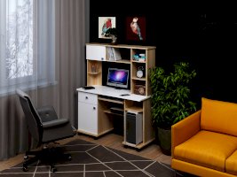 Простой и функциональный компьютерный стол, прекрасно подойдет для работы и учебы. Открытые полки служат для хранения документов, ниши под дополнительную оргтехнику, вместительный ящик. Закрытое отделение состоит из полок, предназначенных для хранения личных вещей.
