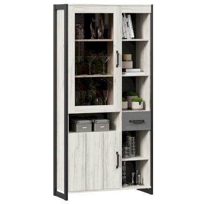 • Слева отделение шириной 540 мм. Вверху за распашной рамочной дверью со стеклом ниша с 2-мя полками из ЛДСП. Размер каждого отделения 540х334 мм.
