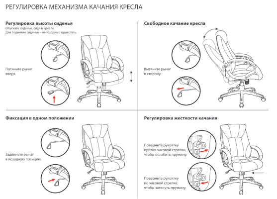 Тип механизма кресла: "топ-ган" качание с регулировкой под вес и фиксацией в 1 положении