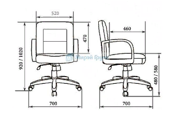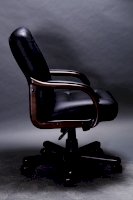 Кресло с низкой спинкой, с подлокотниками прямоугольной замкнутой формы с мягкими накладками обитыми в цвет кресла.