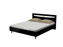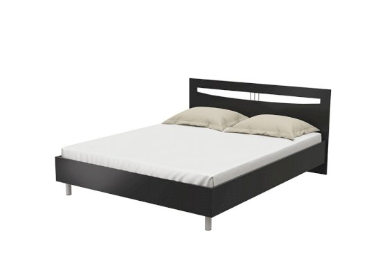 Практичная кровать, выполненная в современном стиле. Изголовье украшено декоративным элементом с металлическими вставками. Материалы
