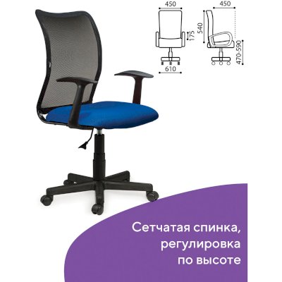 Каркас спинки выполнен из металлической рамы, на которую натянута прочная сетка, формирующая эргономику и поясничную поддержку. Сетчатая спинка способствует естественной циркуляции воздуха и является залогом комфорта независимо от времени года.