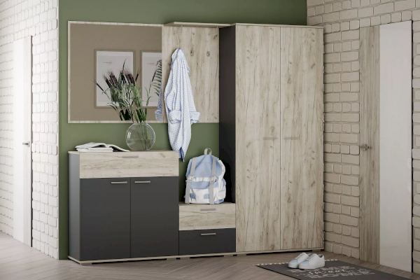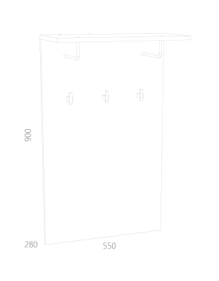 Вешалка из коллекции Санти выполнена в виде настенной панели с тремя крючками. Сверху модуля располагается полка для головных уборов и аксессуаров. Вешалка обеспечит быстрый доступ к самым нужным предметам гардероба.