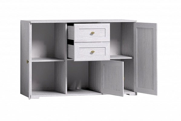 Многоцелевая тумба или широкий комод найдет свое место в любой комнате, включая прихожую и столовую. На ней можно разместить телевизор и использовать как высокую тумбу под ТВ в спальне или гостиной. Еще одно модное решение - повесить над комодом Зеркало в раме Sherlock 7. В этом случае дизайн интерьера станет более изысканным и современным. Распашные фасады по бокам скрывают нишу с полкой, регулируемой по высоте. Два центральных ящика благодаря надежным шариковым направляющим выдерживают нагрузку до 20 кг каждый. Глубина ящика 35 см, высота 12 см, ширина 36 см.